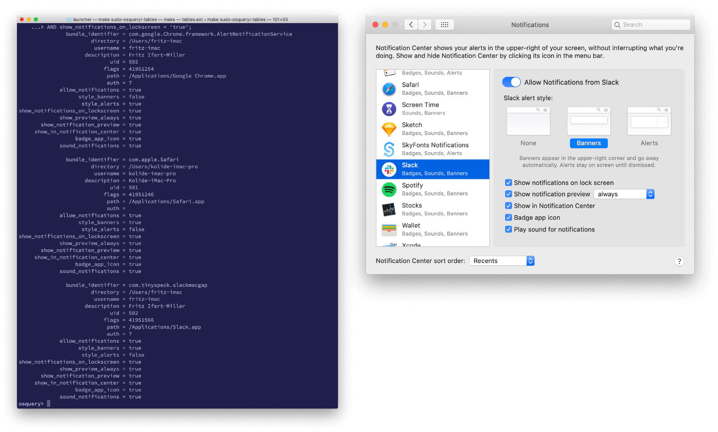 To gather the data on Notification Preferences we dug through the internals of the plist which the OS uses to cache these settings.