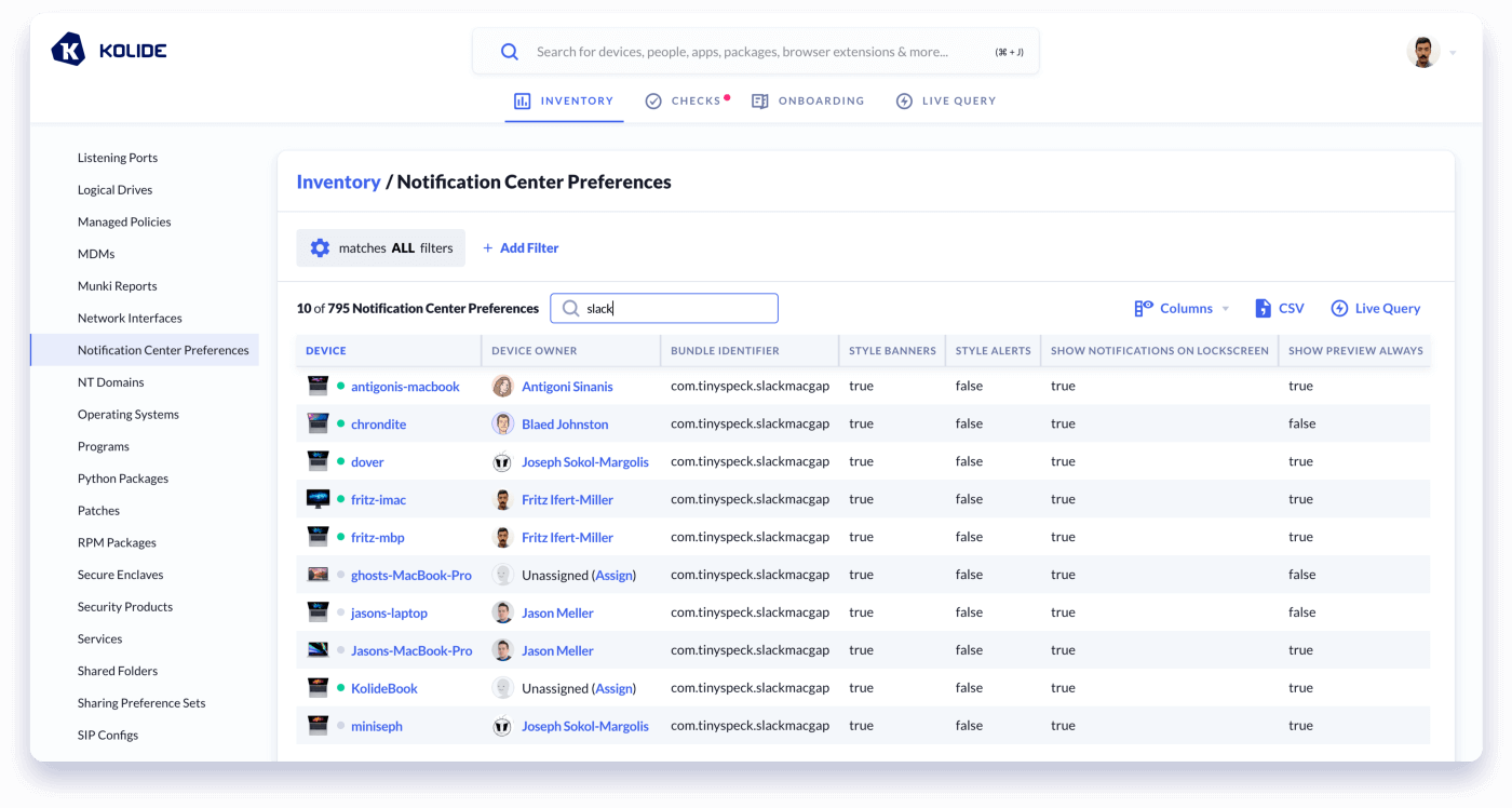 Kolide’s interactive Slack App reaches out to users with self-fix instructions, educating them on their security posture and guiding them through remediation.
