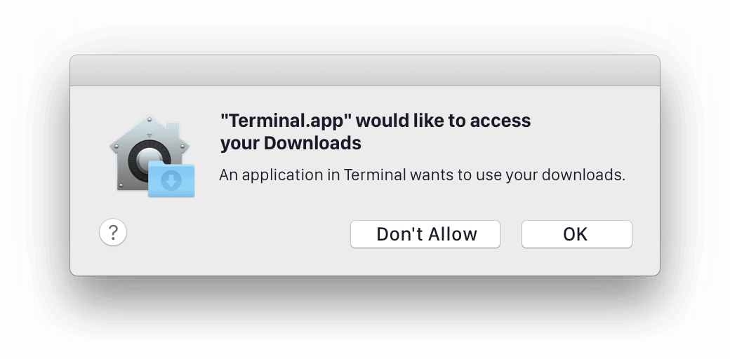 With the release of macOS Catalina, Apple has overhauled its user privacy model, a road they have been on since Mojave. Starting with macOS 10.15 (Catalina), file directories that belong to a user (eg. Downloads, Documents, Desktop, etc.) will require explicit permission to be accessed by your Apps.