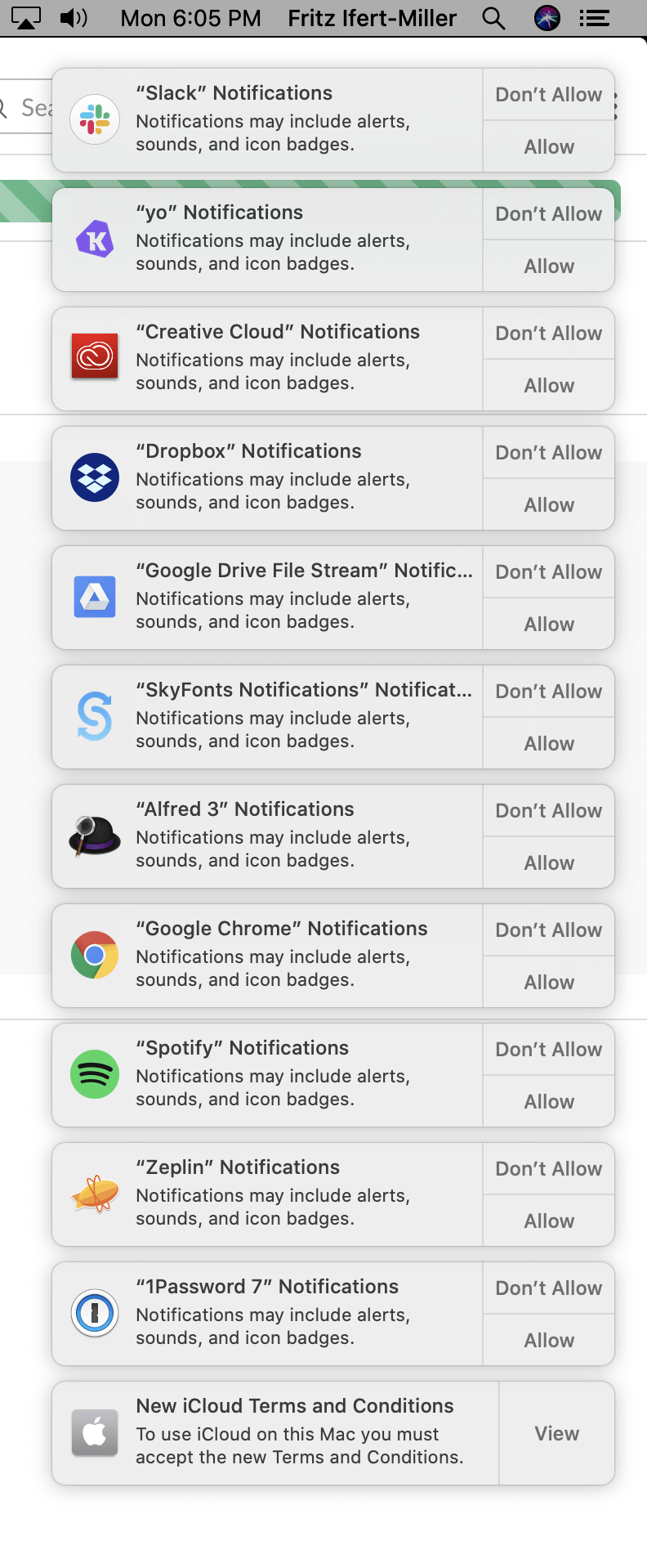 That being said, the initial Catalina experience feels mired with these permission prompt speed-bumps. Especially when they break the basic functionality of Apps which previously required no action from the user.