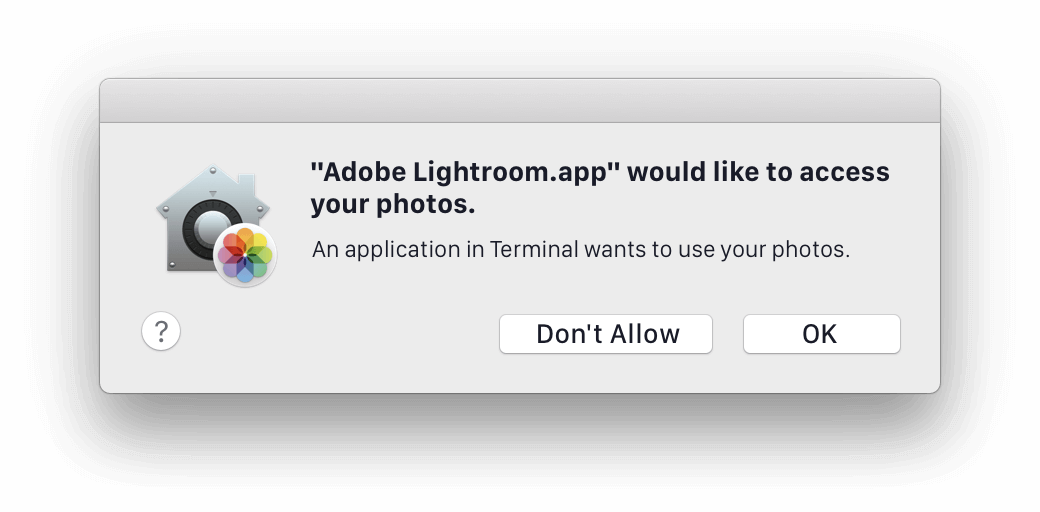 Want Adobe Lightroom to catalog the contents of your ~/Pictures folder? You’re gonna need to authorize that: