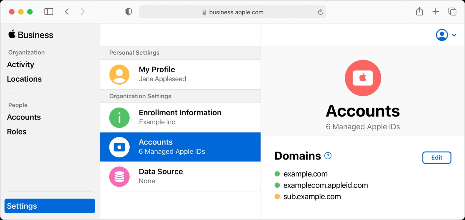 - Centrally configure or manage company Apple IDs.