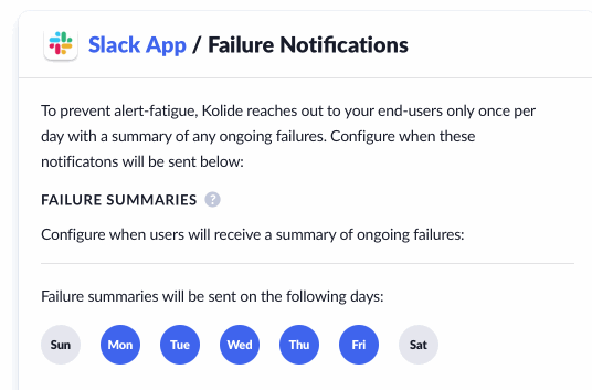 Kolide only sends a failure summary to end-users when their devices are failing checks and only once every weekday to help reduce alert fatigue.