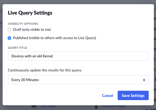 When we launched Live Query last November, it introduced a way for you and your team to quickly run osquery SQL on all the devices in your fleet, and receive an instantaneous response from online devices.