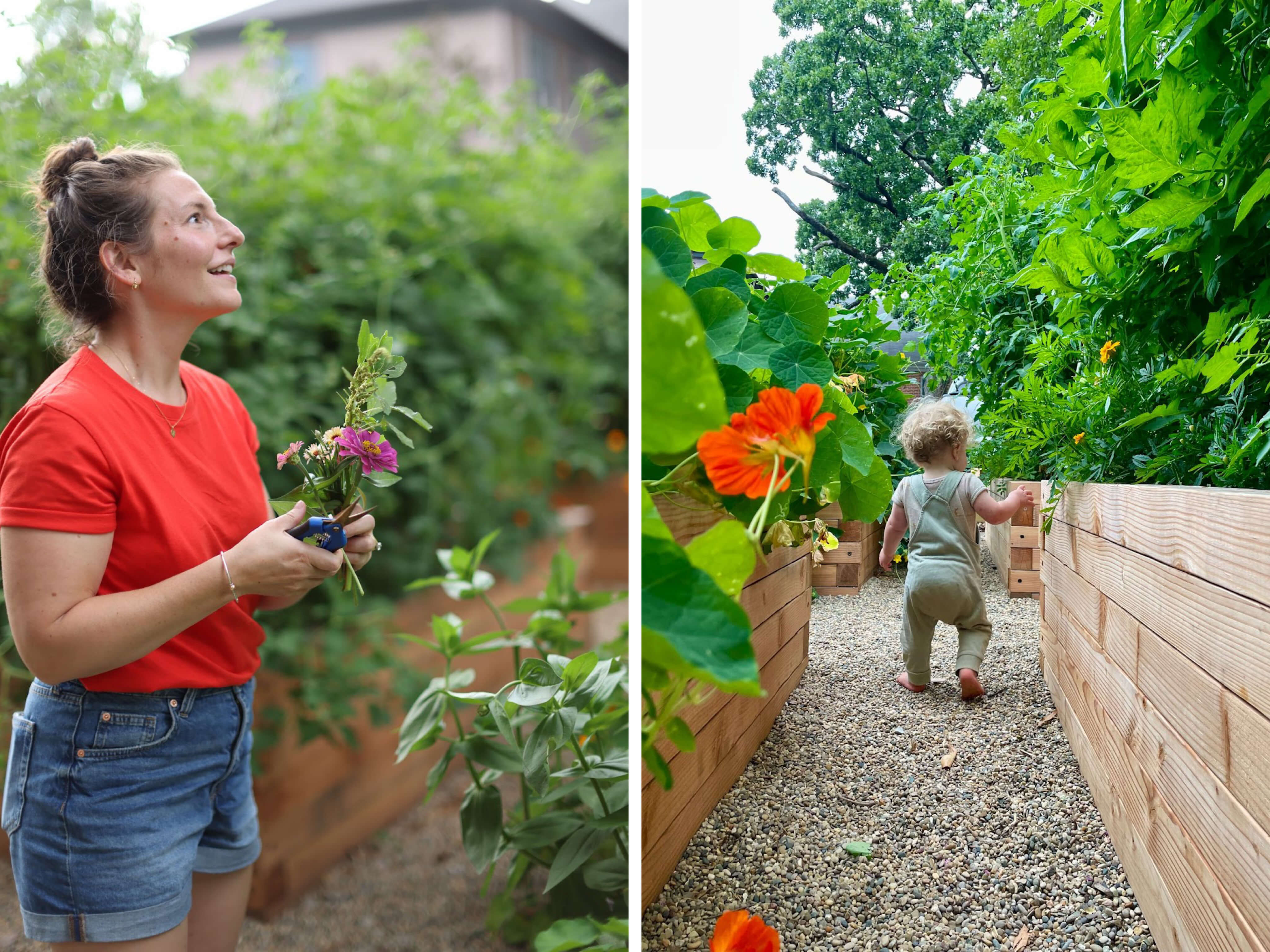 While becoming a parent has been nothing short of transformative, I do try to find time and space for things that bring me joy as an individual as well. I’ve always loved growing things. I have a massive plant collection, and even spent a year of my life farming in New Zealand. Now that we have a home of our own, my partner and I spend a ton of time transforming our outdoor space into an edible oasis. We tore up a big section of overgrown side yard, and gave up a large portion of our parking pad in favor of a raised bed garden.