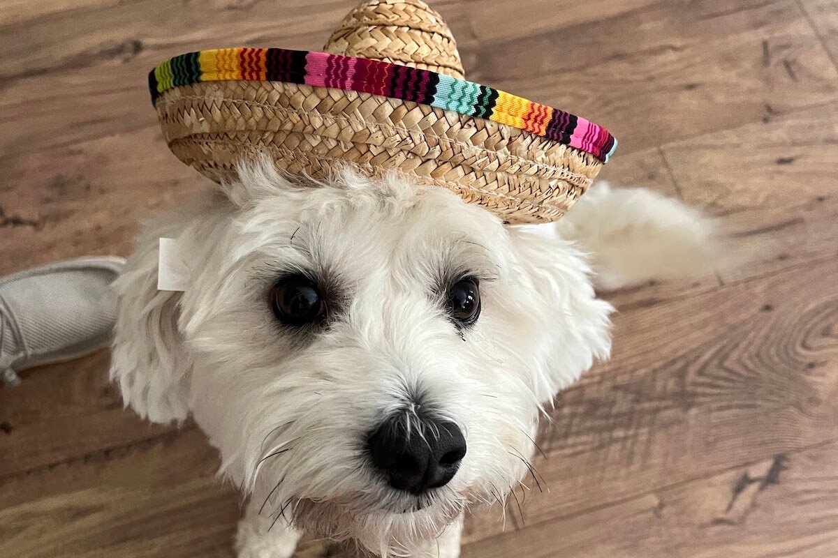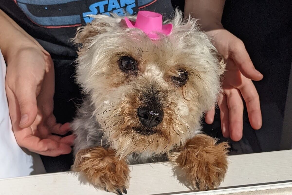 My oldest dog is Rambo, he’s an 8 year old yorkie poodle mix. You can often find him begging for cuddles during video calls or being a grumpy old man under my desk. I think the reference for his name is self explanatory, but I chose it because I liked the idea of naming a tiny, fluffy dog a very aggressive name.