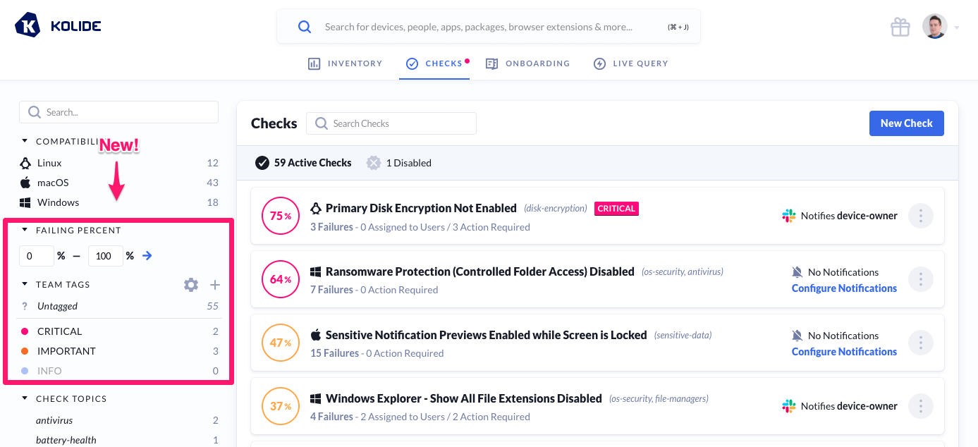 Filter Checks By Untagged & Failing Percent