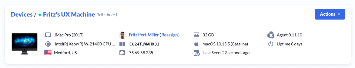 Kolide allows you to change the display name of any device you have in Inventory. While this feature is helpful, it can still be helpful to see the Device’s current hostname without having to dig for it.