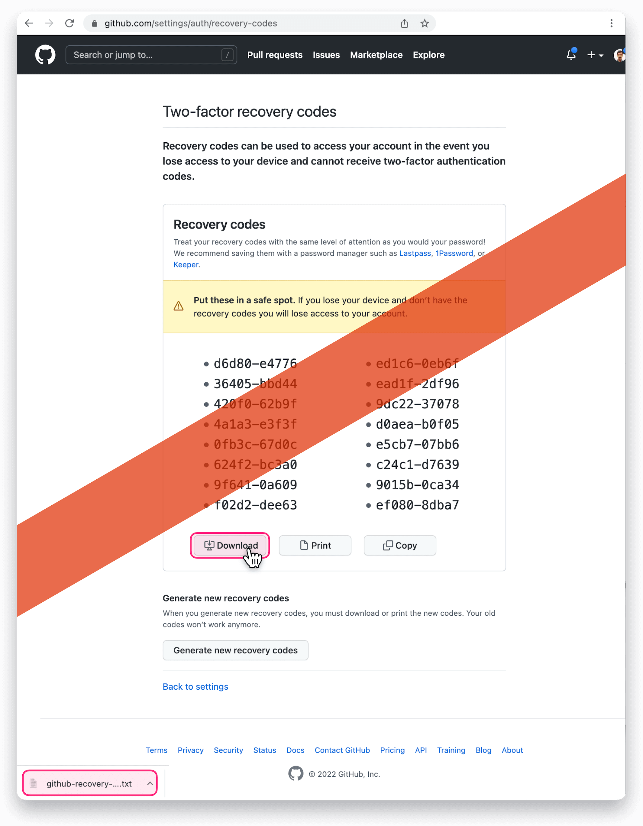 - https://github.com/settings/auth/recovery-codes/download